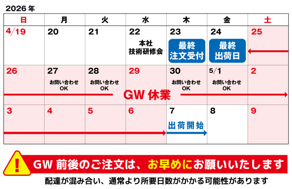 2026年GW期間の出荷業務休止のお知らせ