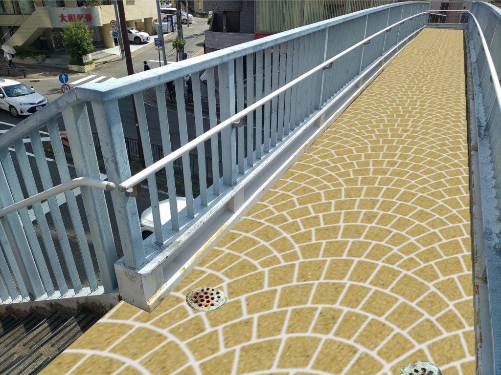 公共工事のシュミレーションも活用いただけます。マットスプレー、スタンプの知識がない方に分かりやすくイメージを伝えるのにお役立て下さい。担当者様に、カタログやサンプルをお見せして説明するよりもっと伝わります。