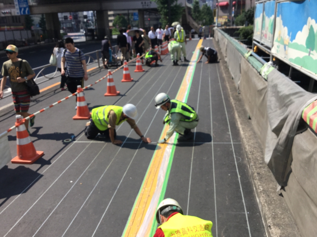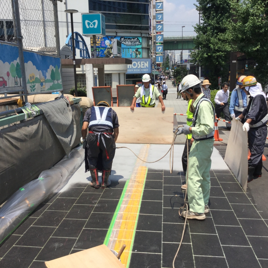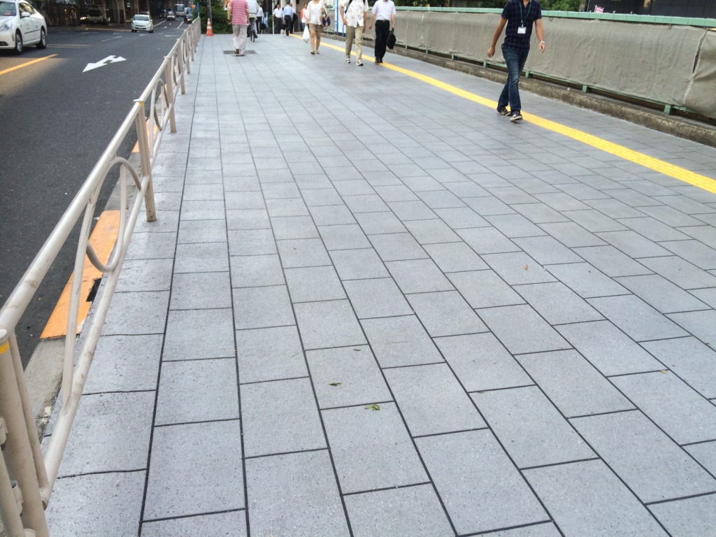 アスファルトへの施工も出来るため、歩道のリニューアル工事にも採用されました。遮熱性のあるマットスプレーは、夏場の灼熱アスファルトの温度を下げます。