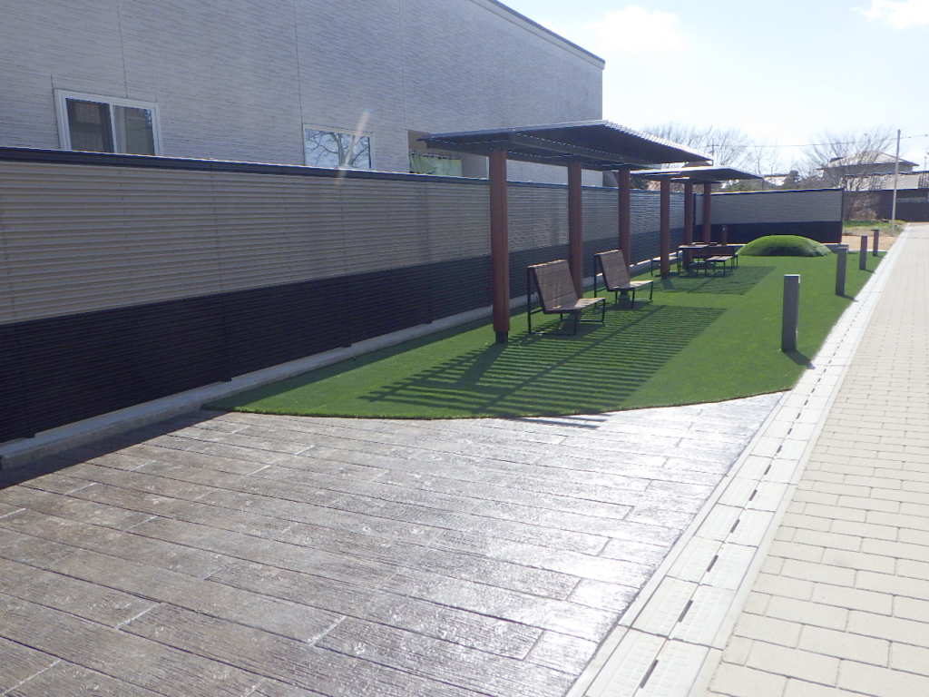 広島県庄原市では、住宅地の空きスペースに休憩場所(まちなか広場整備工事)を作る工事をマットスタンプにて承りました。広島県の認定施工店の新和鋪道様が施工されました。