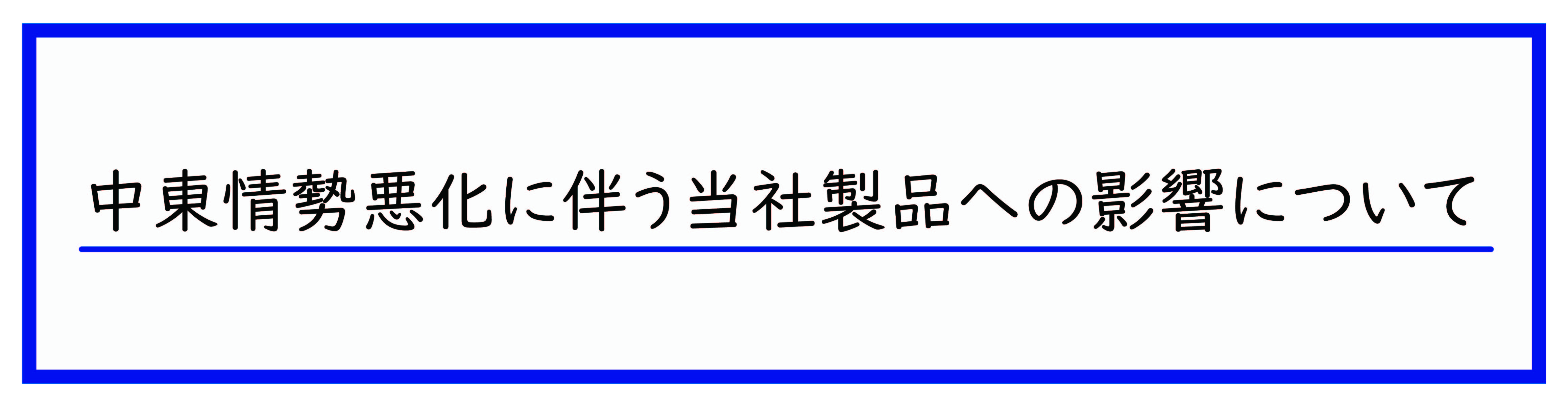 さて、昨今の中東情勢の悪化に伴い、原材料の調達および物流状況が不安定な状況となっております。弊社が取り扱う製品につきましても、原料供給や輸送面で影響を受けており、今後の供給状況が非常に不透明な状況となっております。