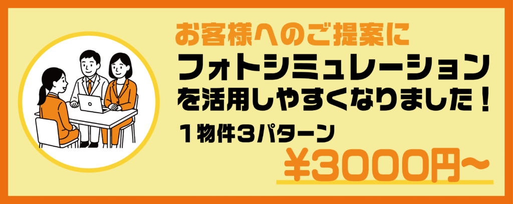 フォトシミュレーションを採用いただきますと、お客様との打ち合わせ時間が短縮でき、リアルな完成イメージにより成約率が上がります。